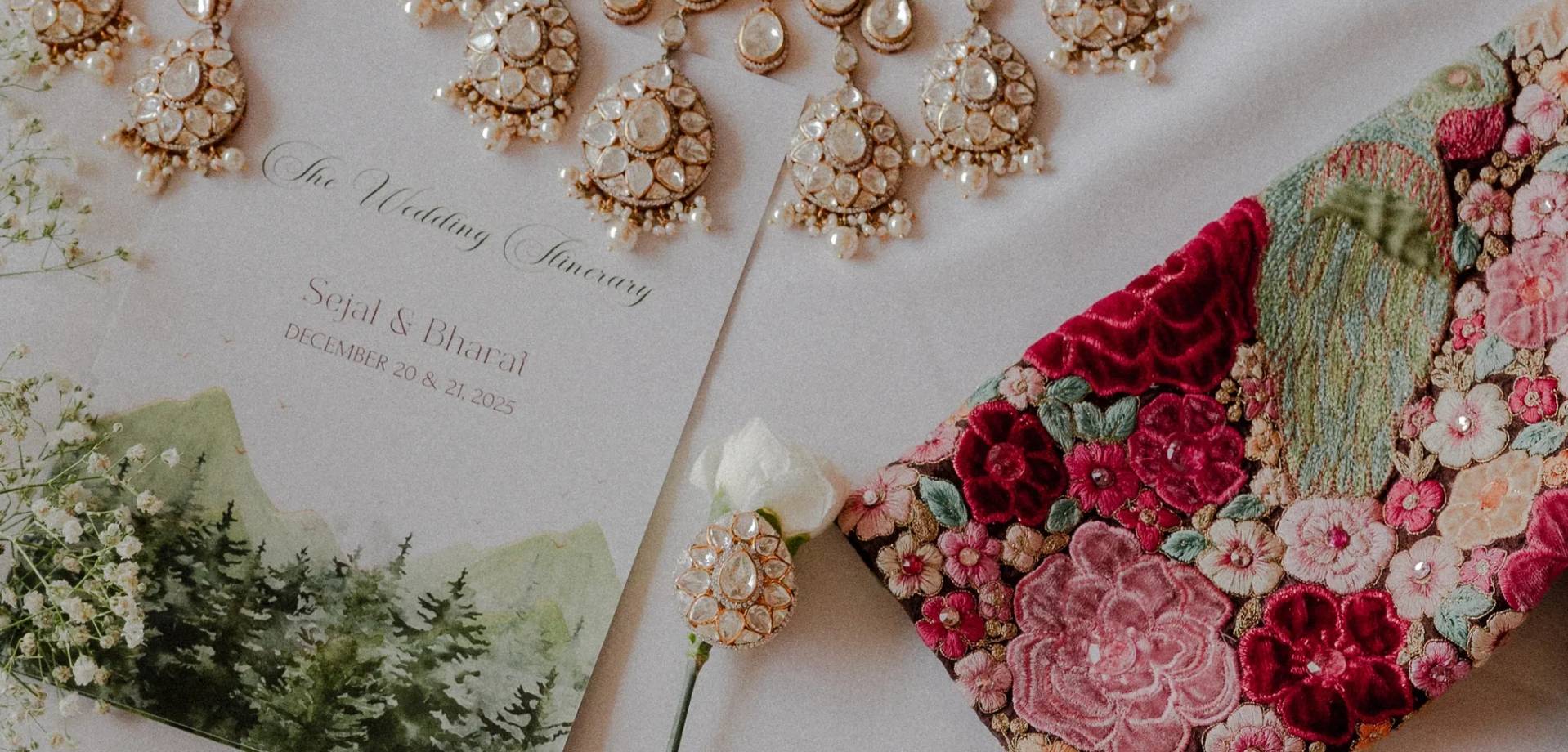 One of our recent works in the spotlight is Sejal Kumar and Bharat Subramaniam’s intimate mountain wedding in Mussoorie, featured by Vogue India. Illustration Palette designed Sejal Kumar’s complete wedding invitation suite and stationery, thoughtfully reflecting the couple’s love for the mountains, slow moments, and meaningful celebrations, echoing the soul of the wedding.